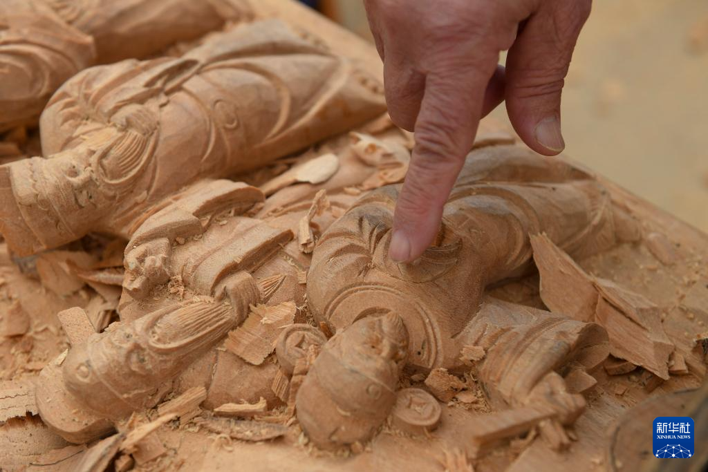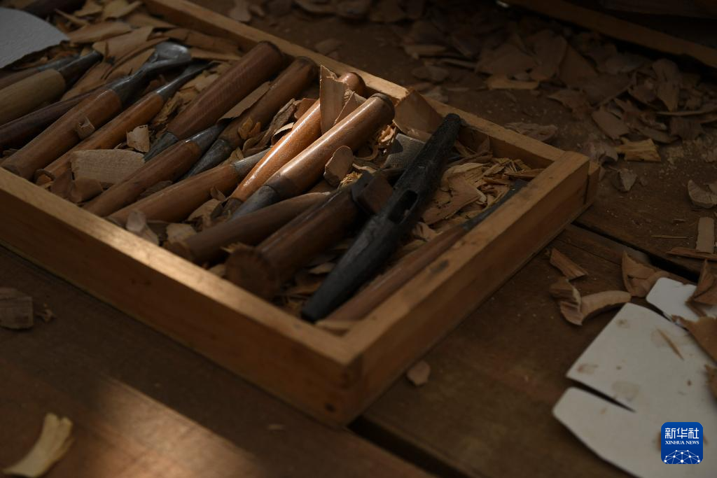11月22日,在“古建共富工坊”,木工师傅在制作昂头。
