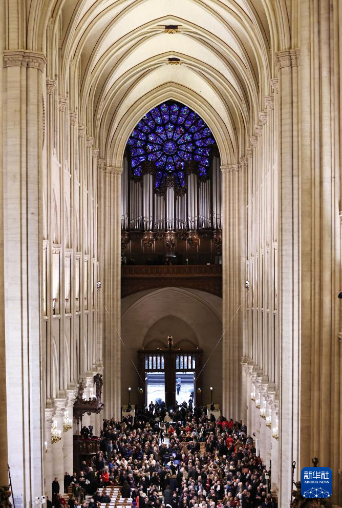 这是12月8日拍摄的巴黎圣母院重新开放仪式现场。