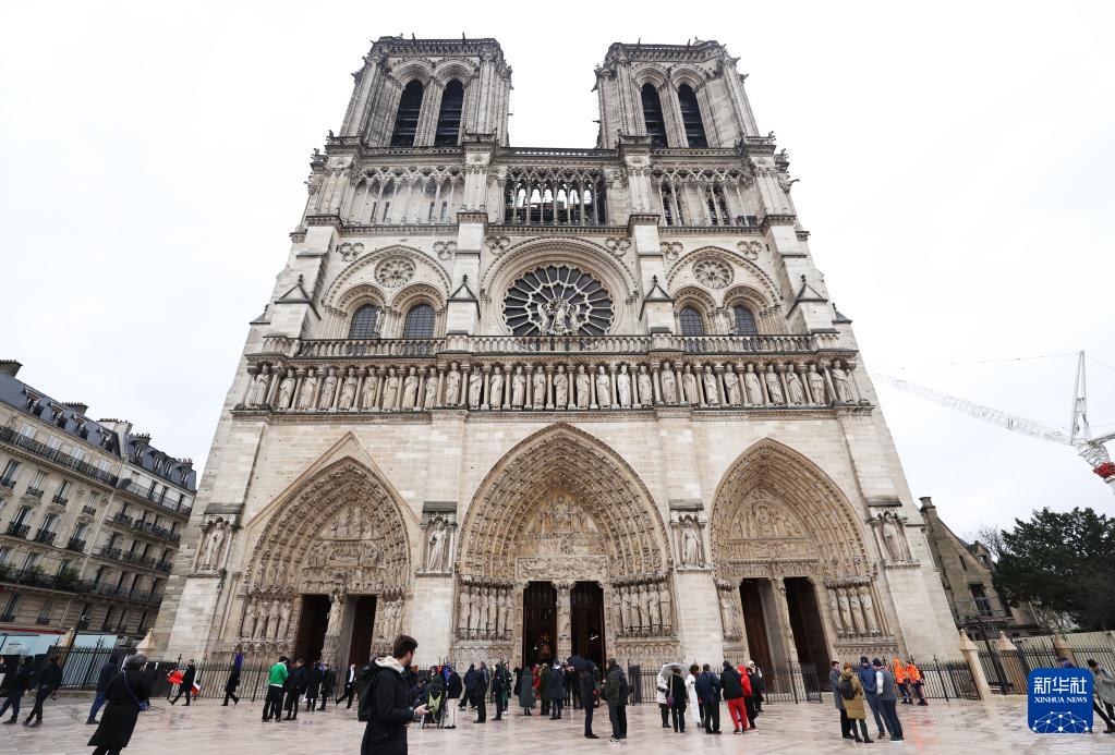 法国7日和8日在位于塞纳河畔的巴黎圣母院举行仪式,庆祝2019年失火的巴黎圣母院经过5年修复后重新开放。