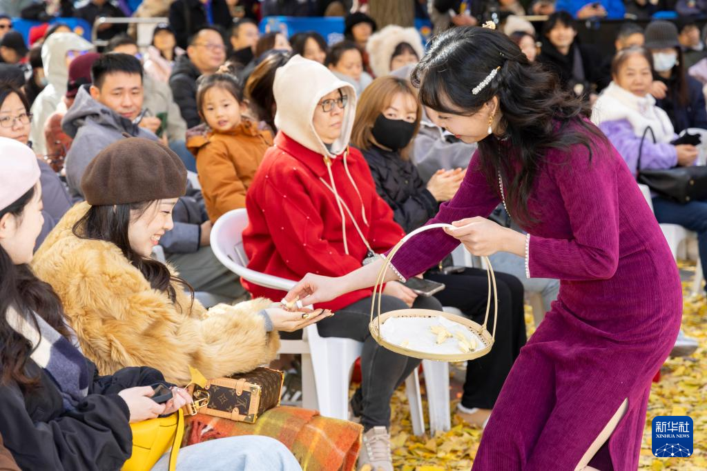 12月8日,参加“银杏音乐会”的青年音乐家与观众互动。