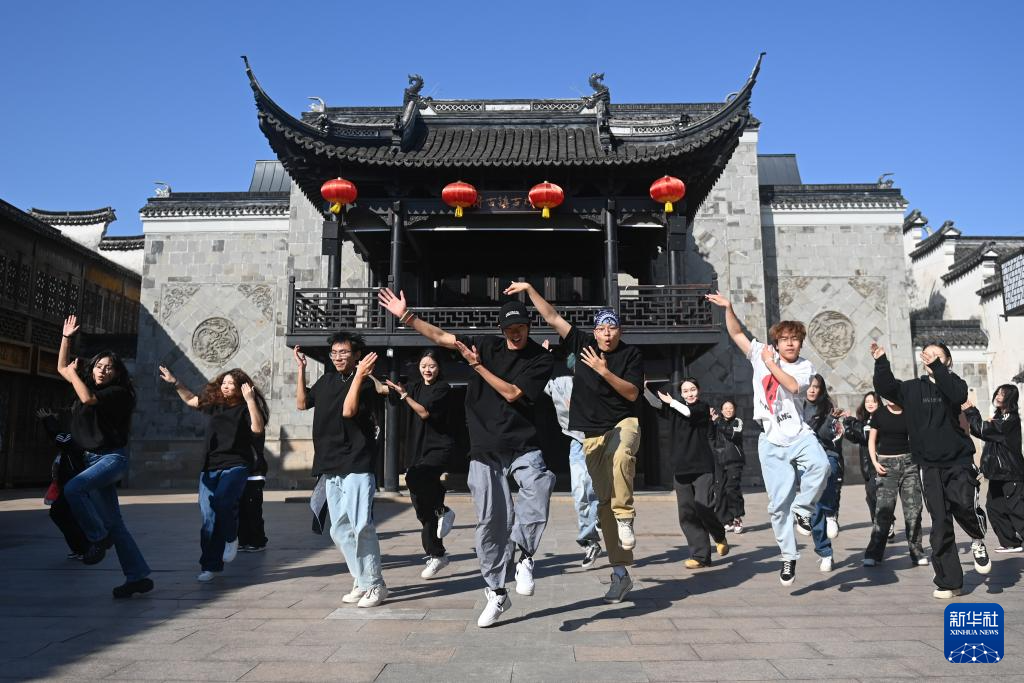 当日,在浙江省湖州市南浔区参加2024年中国大学生街舞锦标赛的学生代表受邀来到南浔古镇。学生们以古镇为舞台,即兴表演多场激情四溢的街头舞蹈,为游客带来独特的体验。