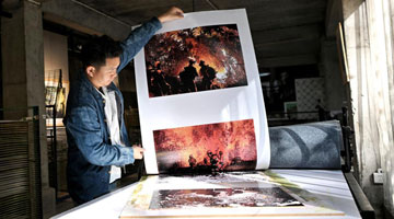 12月9日,庄恩琪在活动开始前看爸爸化妆。
