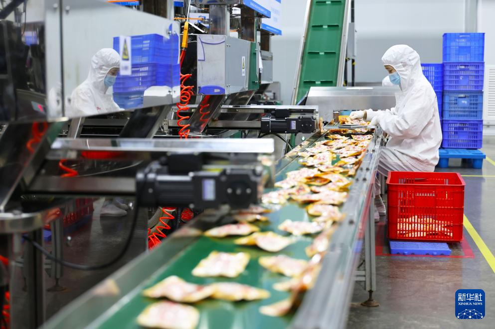 柳州市螺蛳粉产业园的一家螺蛳粉生产企业工作人员在生产线上作业(11月13日摄)。