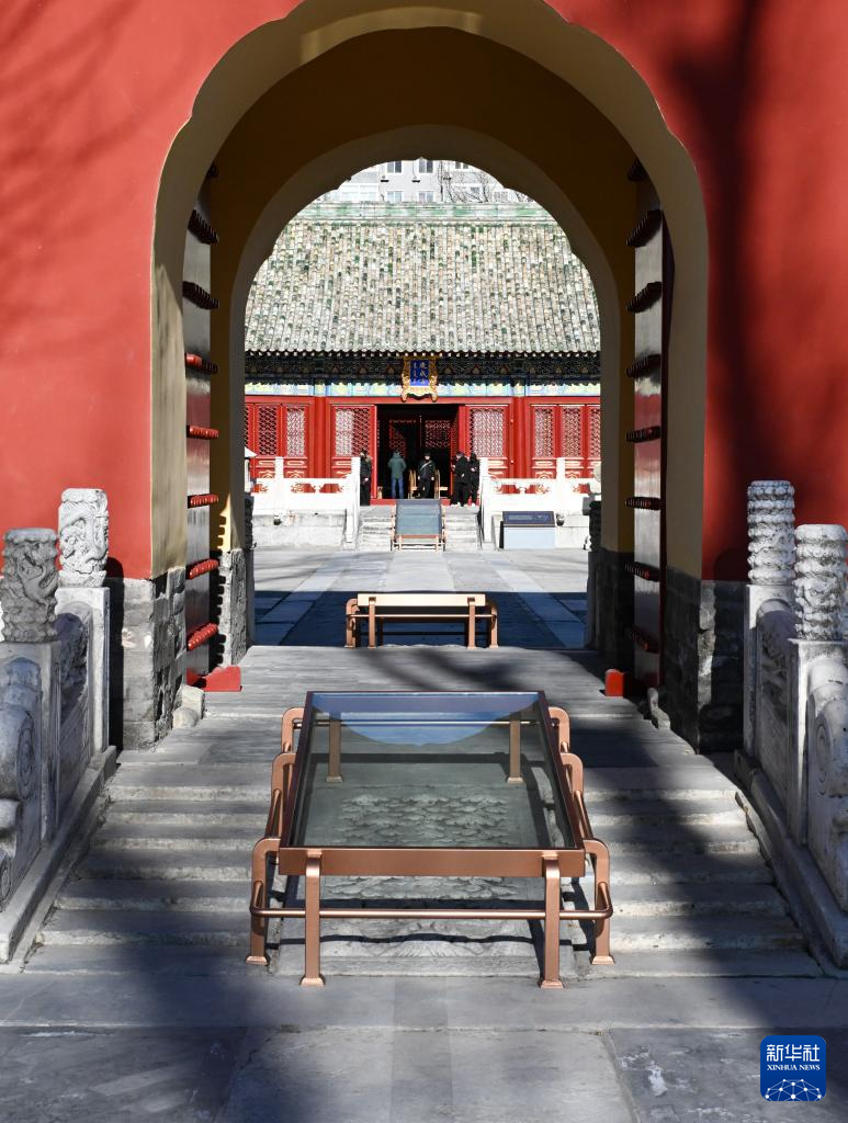12月21日拍摄的庆成宫一进院内的“北京中轴线申遗保护工作成果展”。