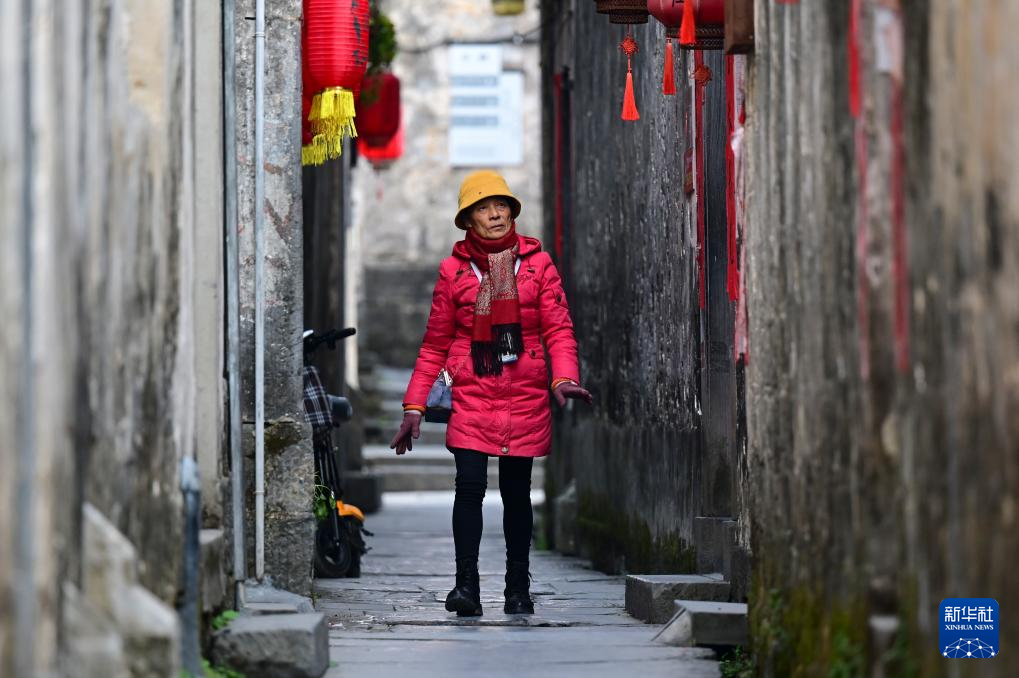 12月18日,胡晓雯在西递村敬爱堂中远眺。