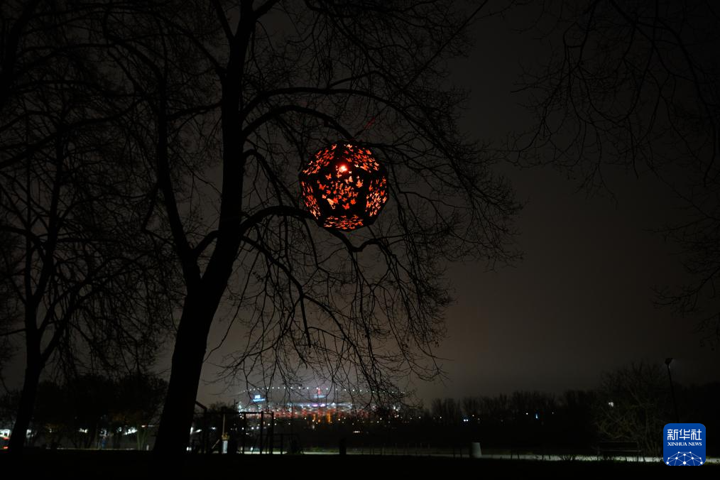 这是12月28日在波兰华沙的维斯瓦河畔拍摄的灯笼。