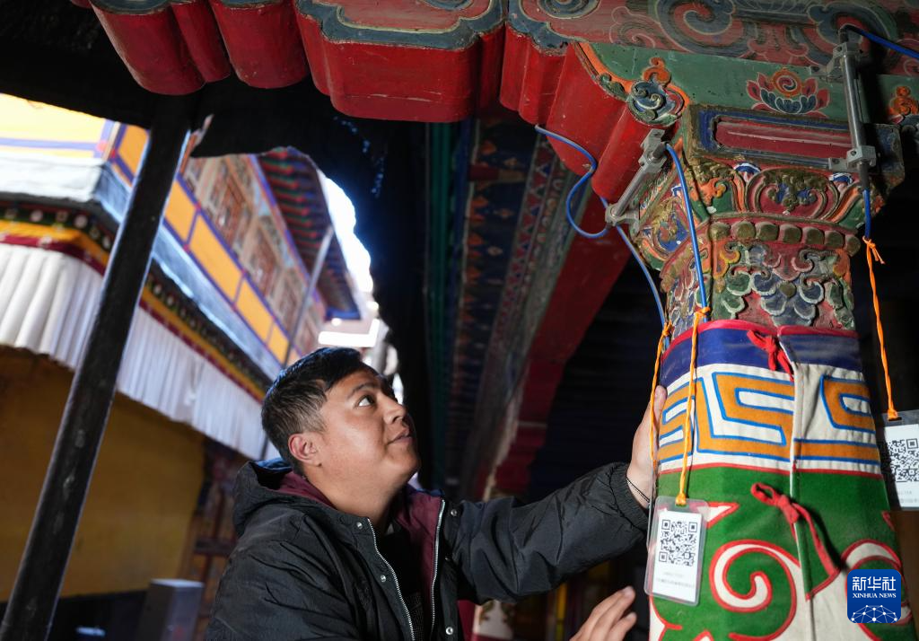 12月4日,布达拉宫监测中心的工作人员旦增旺堆巡查布达拉宫木结构传感器设备。