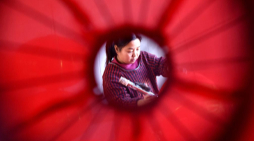 1月14日,在重庆市梁平区屏锦镇,梁平木版年画国家级代表性传承人徐家辉的家人在刷印木版年画。