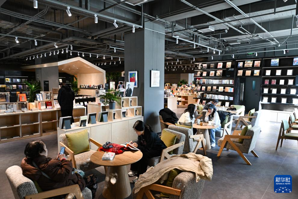2月9日,读者在朝阳区图书馆劲松馆一层的饮品简餐区域阅读、休闲。