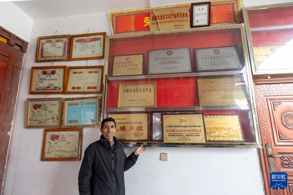 厂长拉巴琼达是这项非物质文化遗产的代表性传承人。如今,他带领18个匠人和学徒把厂子做得红红火火,2024年平均每个工人每月收入达到7000多元,靠非遗手艺实现了共同富裕。