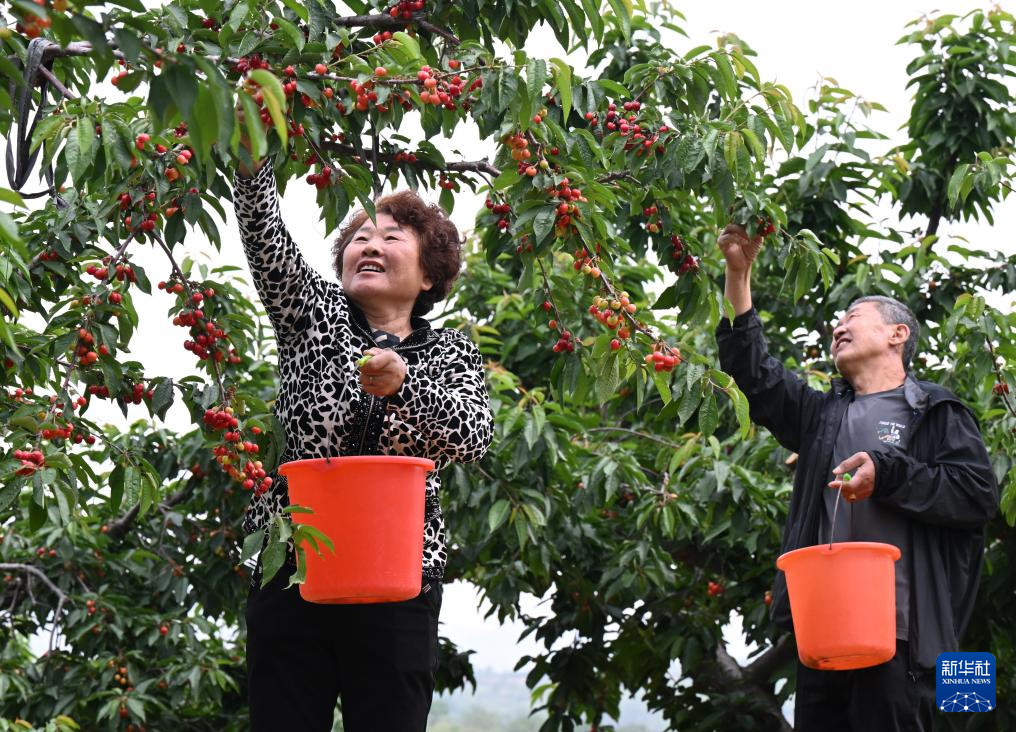 5月7日,游客在赞皇县鲍家滩樱桃种植基地采摘樱桃。