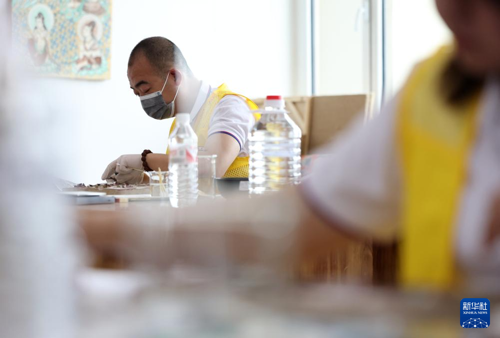 5月22日,来自麦积山石窟艺术研究所的参赛选手李瑞祥在壁画文物修复比赛中。
