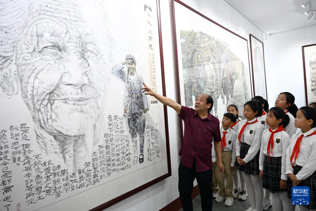 今年是中国人民抗日战争暨世界反法西斯战争胜利80周年,在沂蒙革命老区山东省日照市莒县,小学生们走进沂蒙画派研究院,学习绘画知识,欣赏绘画作品,聆听画作背后的沂蒙故事,感受沂蒙精神,接受爱国主义教育。