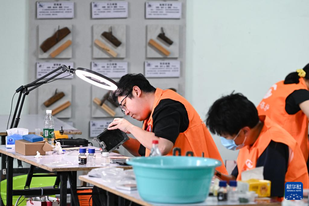 这是5月26日拍摄的金属文物修复师比赛现场。