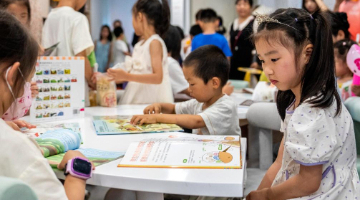 6月29日,在“黄河大集”美术市集,一名小朋友在体验面部绘画。