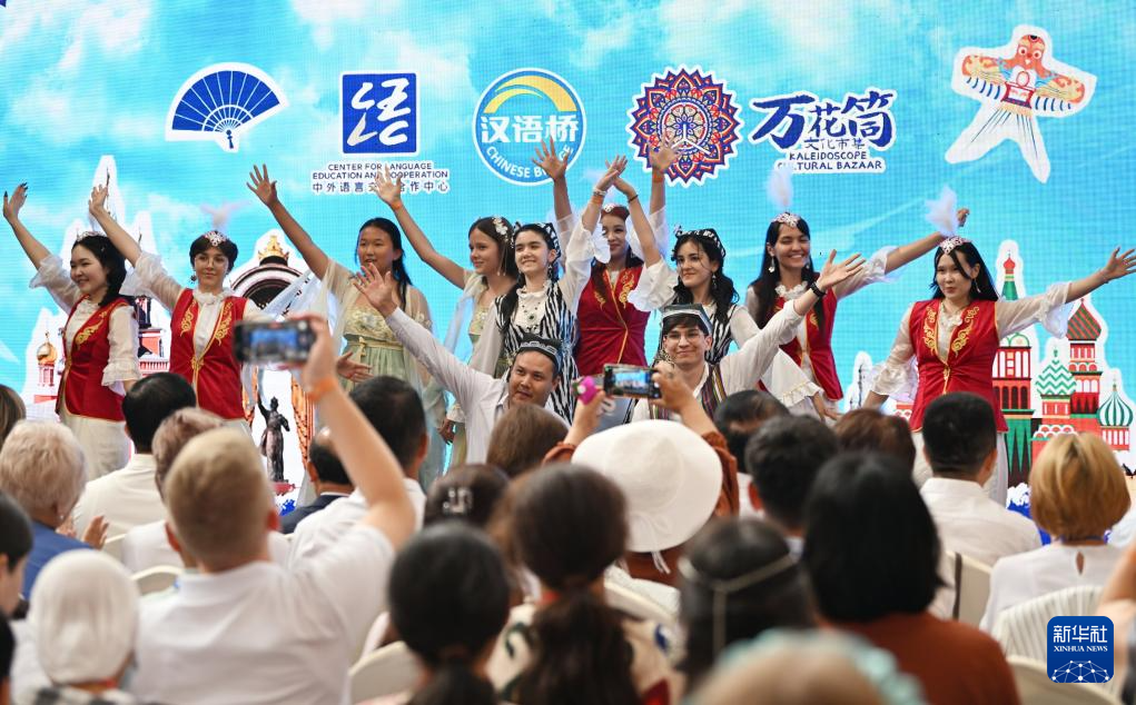 8月6日,上合国家青年学生共同表演舞蹈节目。