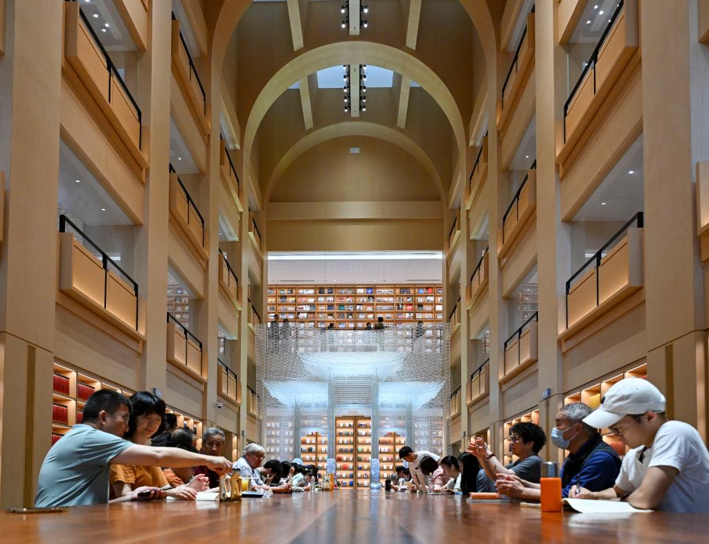 人们在上海徐家汇书院读书(5月17日摄)。新华社记者陈朔 摄