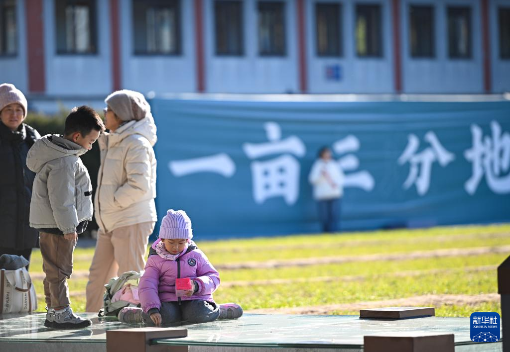 12月30日,小朋友在位于先农坛内坛区域的明清耤田前玩耍。