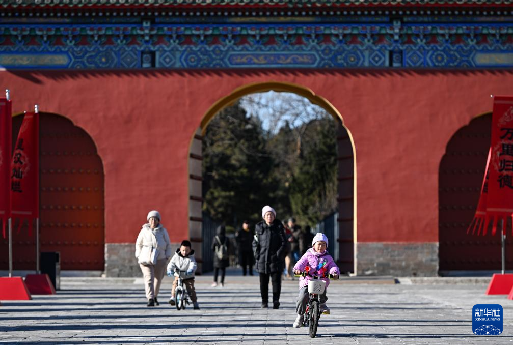 12月30日,小朋友骑着自行车从东天门驶向外坛庆成宫区域。