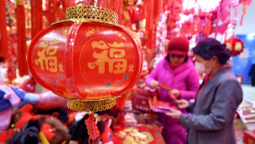 2月3日,游客在宁夏固原市西吉县年货大集上选购非遗文创产品。
