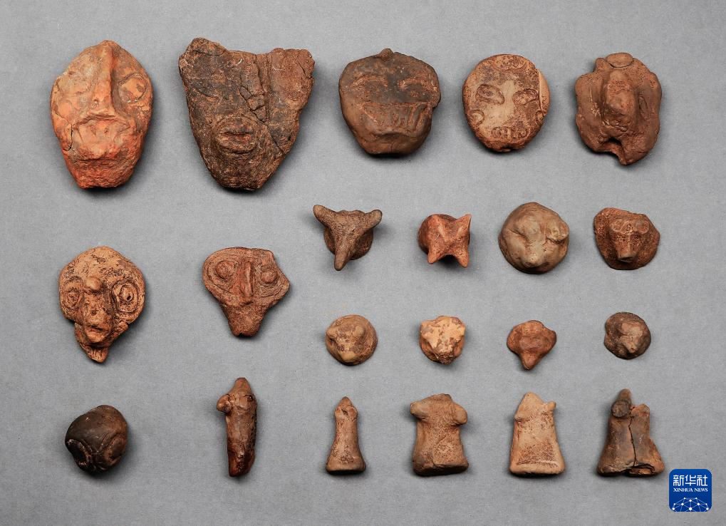 河南新郑市裴李岗石器时代遗址出土的陶塑(资料照片)。