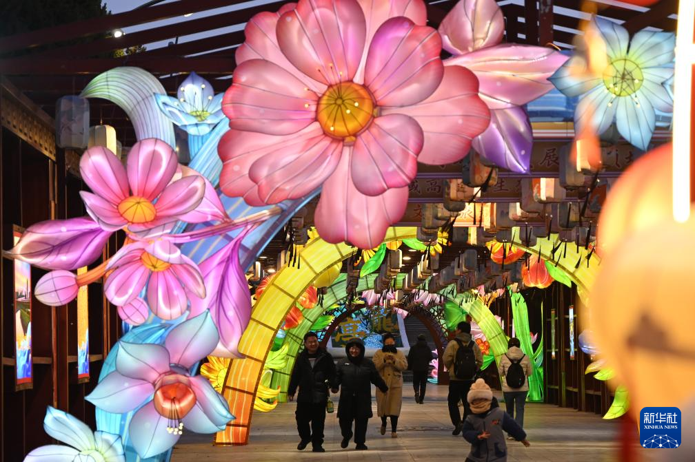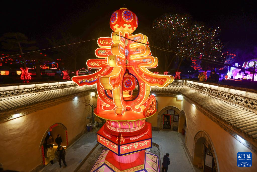2月10日,人们在河南省三门峡市陕州区地坑院景区欣赏花灯。