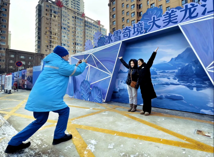 图为黑龙江销售哈尔滨会展加油站“冰雪主题墙”成为打卡点。