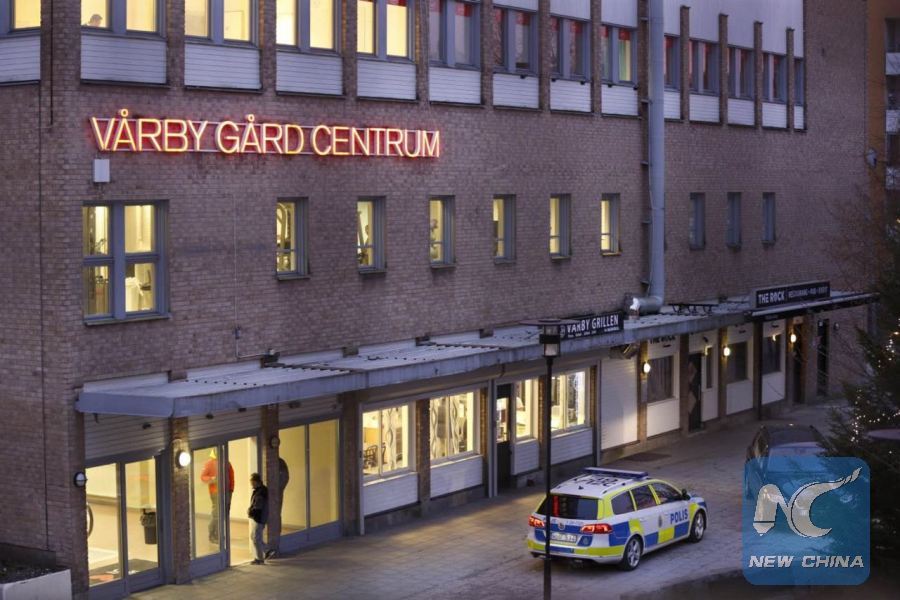 The Varby Gard station in the municipality of Huddinge, which is about 11 kilometers south of Stockholm, Sweden, was reopened after an explosion killed a man and wounded a woman on January 7, 2018. (Xinhua/Wei Xuechao)