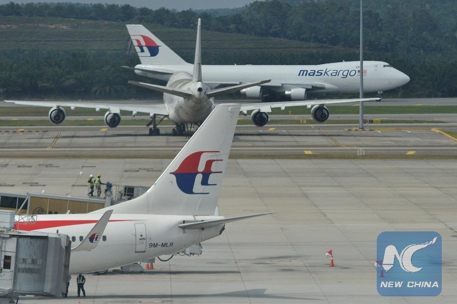 Malaysia Airlines flights are seen parking at the Kuala Lumpur International Airport in Kuala Lumpur, Malaysia, Aug. 8, 2014. (Xinhua/Chong Voon Chung)