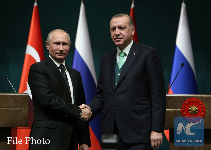 MOSCOW, Feb. 8 (Xinhua) -- Russian and Turkish leaders agreed to further coordinate their troops and special services in Syria to combat terrorist groups who are violating the Syrian ceasefire, the Kremlin said Thursday.