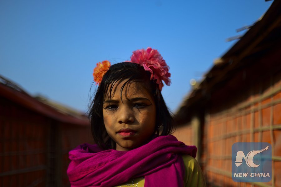 A Rohingya refugee girl poses for a photo at Balukhali refugee camp in Bangladesh's Ukhia district on Jan. 26, 2018. (Xinhua/AFP)