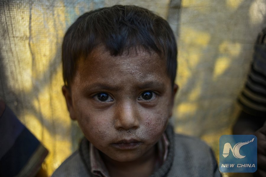 A Rohingya Muslim refugee boy sits in a makeshift shelter at Kutupalong refugee camp in Bangladesh's Ukhia district on Jan. 23, 2018. (Xinhua/AFP)