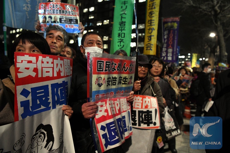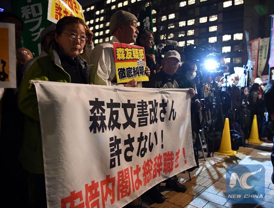 Xinhua Headlines: Japan's Abe mired in cronyism scandal, facing increasing calls for cabinet's resignation