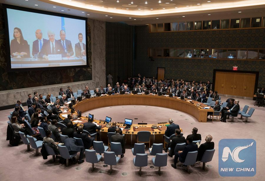 The United Nations Security Council meets on threats to international peace and security and the situation in the Middle East April 9, 2018 in New York. (AFP photo)