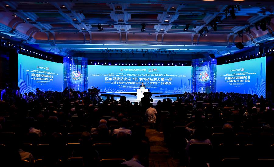 Nguyen Xuan Thang, Secretary of the Communist Party of Vietnam Central Committee(CPVCC) and Director of the Ho Chi Minh City National Academy of Politics, addresses a meeting with the theme "Reform and opening-up holds the key to the destiny of contemporary China" held inShenzhen, south China's Guangdong Province, May 27, 2018. China's reform and opening-up has not only yielded top results, but also provided valuable experience to the world, according to attendees of a meeting held in Shenzhen. (Xinhua/Mao Siqian)