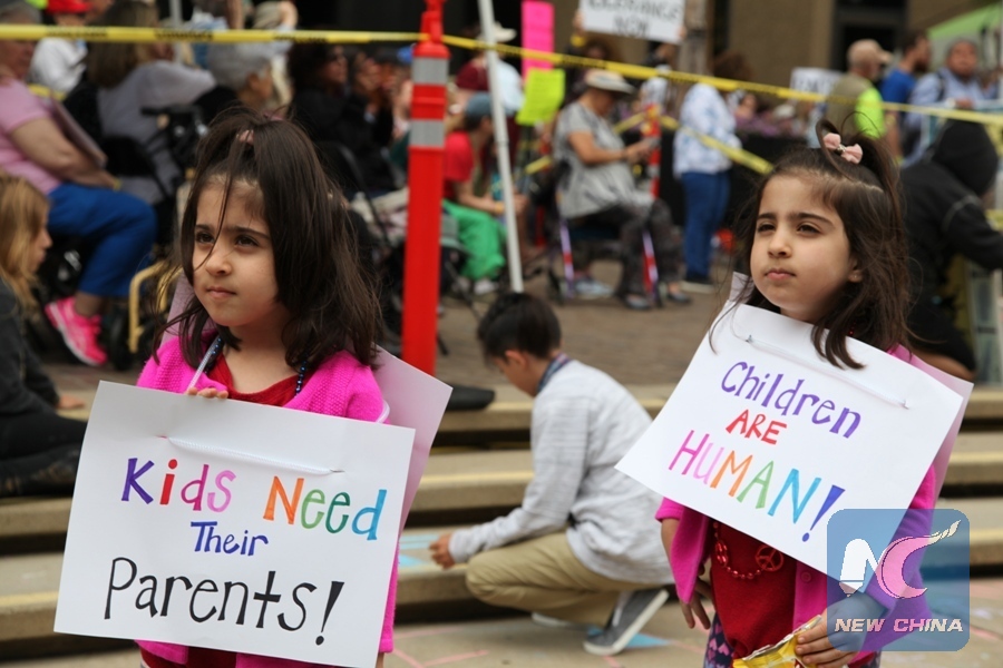 WASHINGTON, June 28 (Xinhua) -- About 600 protesters, mostly women, on Thursday were detained by police for a mass sit-in against U.S. President Donald Trump's "zero tolerance" immigration policy at the U.S. Senate.