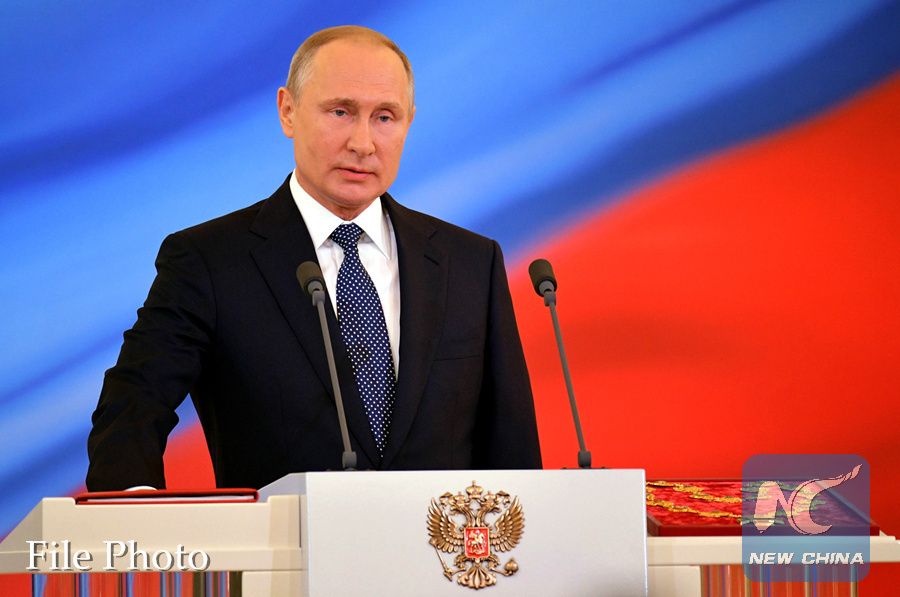 Russian President Vladimir Putin addresses his inauguration ceremony in Moscow, capital of Russia, on May 7, 2018. (Xinhua/Sputnik)