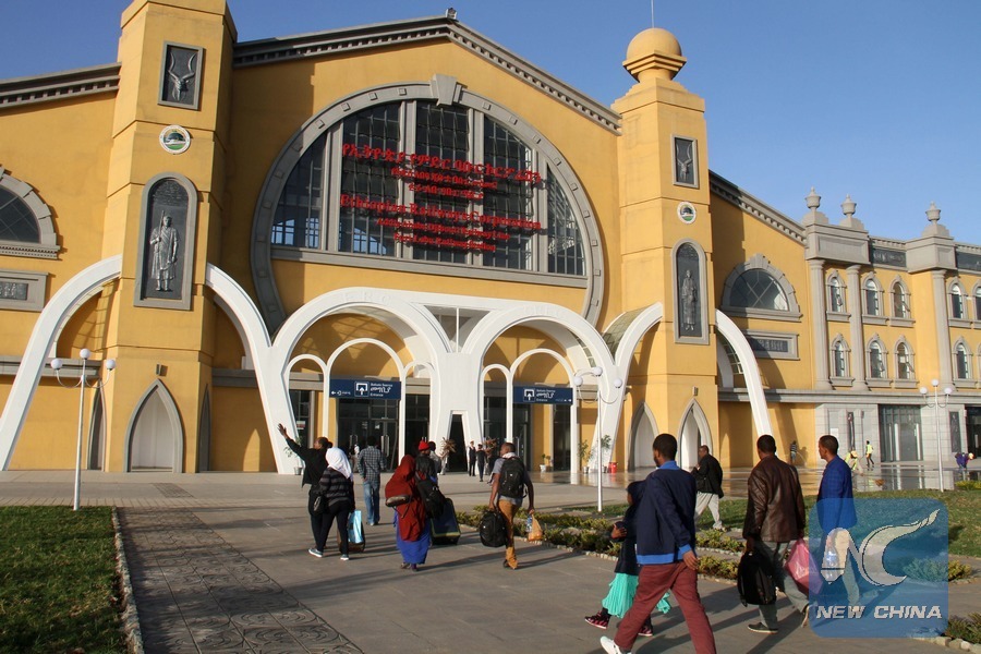 People walk into a station of the Ethiopia-Djibouti railway in Addis Ababa, capital of Ethiopia, on May 11, 2018. The 752-km railway links Ethiopia's capital Addis Ababa and the Red Sea nation of Djibouti. It is one of the many Chinese-built and -funded infrastructure projects that have sprung up on the African continent in recent years. (Xinhua/Lyu Tianran)