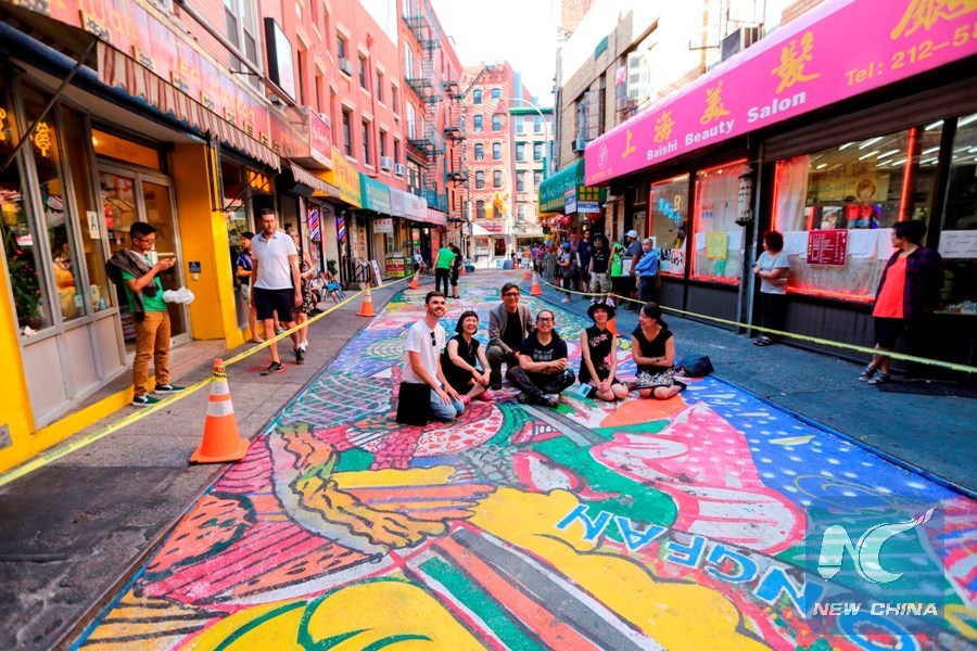 NEW YORK, July 21 (Xinhua) -- One of the oldest streets in Manhattan's Chinatown in New York City got a high-fashion makeover as a Chinese artist painted a grand dragon on it.