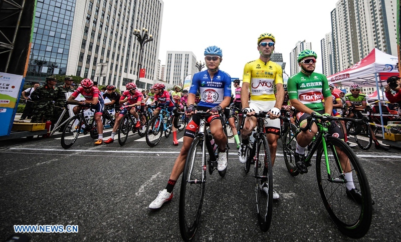 Cyclists wait to start the second stage of the Tour of Qinghai Lake in northwest China's Qinghai Province, on July 23, 2018. (Xinhuanet Photo by Jia Haiyuan)