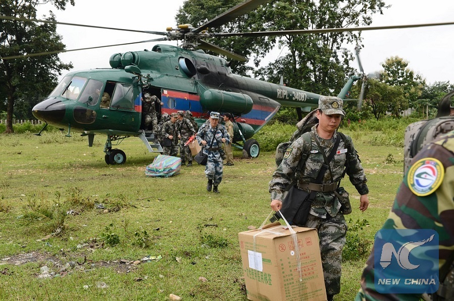 A Chinese People's Liberation Army (PLA) medical team arrive at the flooded-area in Attapeu, Laos, July 26, 2018. (Xinhua/Liu Ailun)