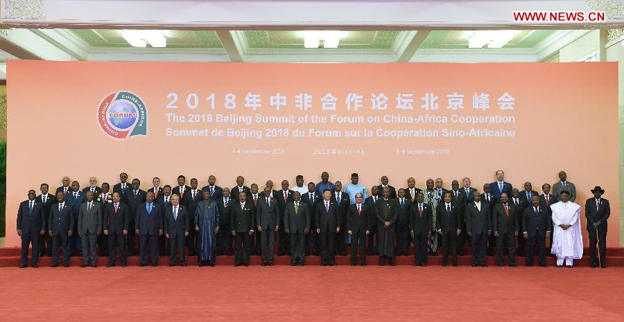 Chinese President Xi Jinping and foreign leaders pose for a group photo ahead of the opening ceremony of the Beijing Summit of the Forum on China-Africa Cooperation (FOCAC) at the Great Hall of the People in Beijing, capital of China, Sept. 3, 2018. The FOCAC Beijing Summit opened here on Monday. Chinese President Xi Jinping delivered a keynote speech titled "Work Together for Common Development and a Shared Future" at the opening ceremony. (Xinhua/Zhang Ling)