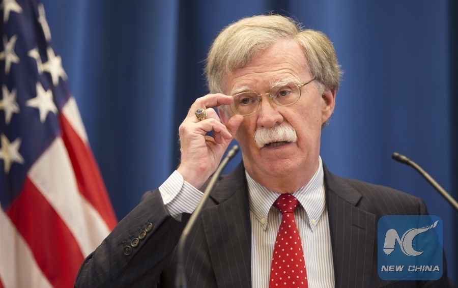 File Photo: U.S. National Security Advisor John Bolton speaks during a press conference in Geneva, Switzerland, Aug. 23, 2018. (Xinhua/Xu Jinquan)