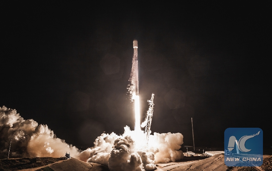 File Photo: A Falcon 9 rocket is launched with Spain's PAZ, a radar-imaging satellite, and two SpaceX test satellites for global broadband at Vandenberg Air Force Base in California, the United States, Feb. 22, 2018. (Xinhua/SpaceX)