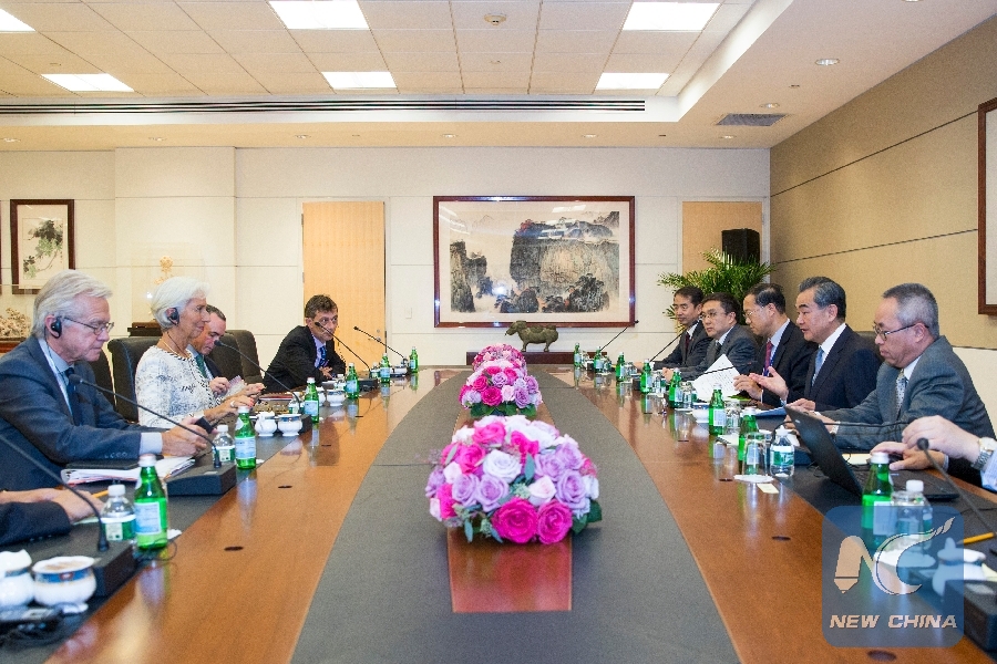 NEW YORK, Sept. 26 (Xinhua) -- Chinese State Councilor and Foreign Minister Wang Yi met with Managing Director of the International Monetary Fund (IMF) Christine Lagarde on Wednesday, exchanging views on multilateralism and the reform of the World Trade Organization (WTO).