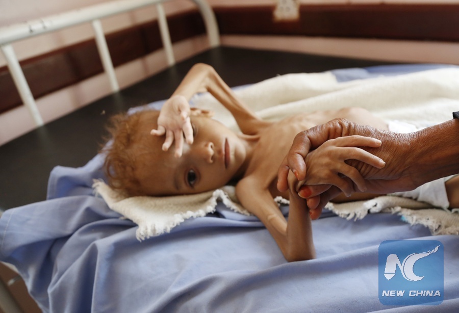 A malnourished child is seen at a hospital in Hajjah province, Yemen, Oct. 1, 2018. (Xinhua/Mohammed Mohammed)