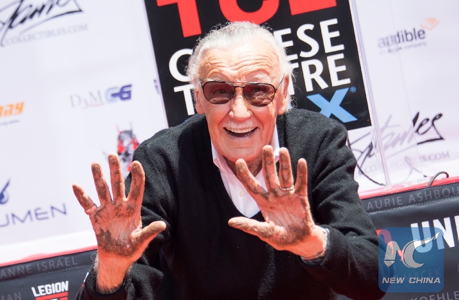 File Photo: Comic-book writer, editor, and publisher Stan Lee places his hands in cement during his hand and footprint ceremony at TCL Chinese Theatre IMAX, on July 18, 2017, in Hollywood, California. (Xinhua/AFP)