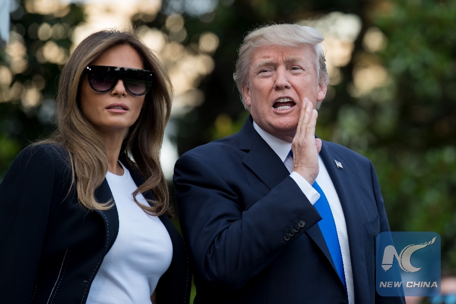 WASHINGTON, Nov. 28 (Xinhua) -- U.S. President Donald Trump and First Lady Melania Trump lit the National Christmas Tree set up on the south front of the White House on Wednesday.