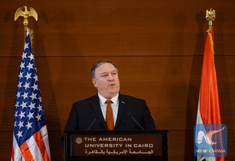 WASHINGTON, Jan. 10 (Xinhua) -- U.S. Secretary of State Mike Pompeo's speech in Egypt on Thursday on U.S. policy in the Middle East was self-congratulatory and unconvincing, experts said.