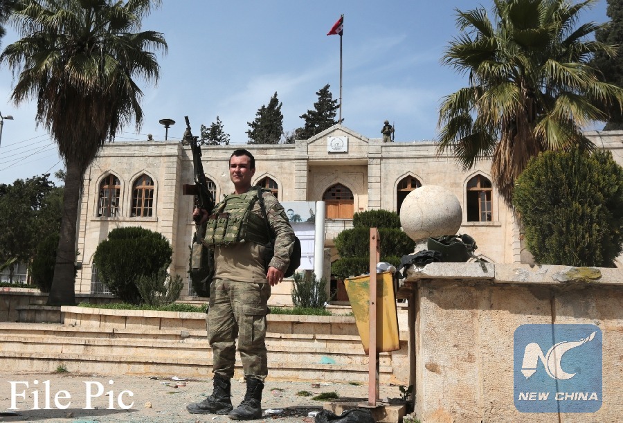 A Turkish soldier is seen in Afrin city center, Syria, on March 19, 2018. (Xinhua File photo)
